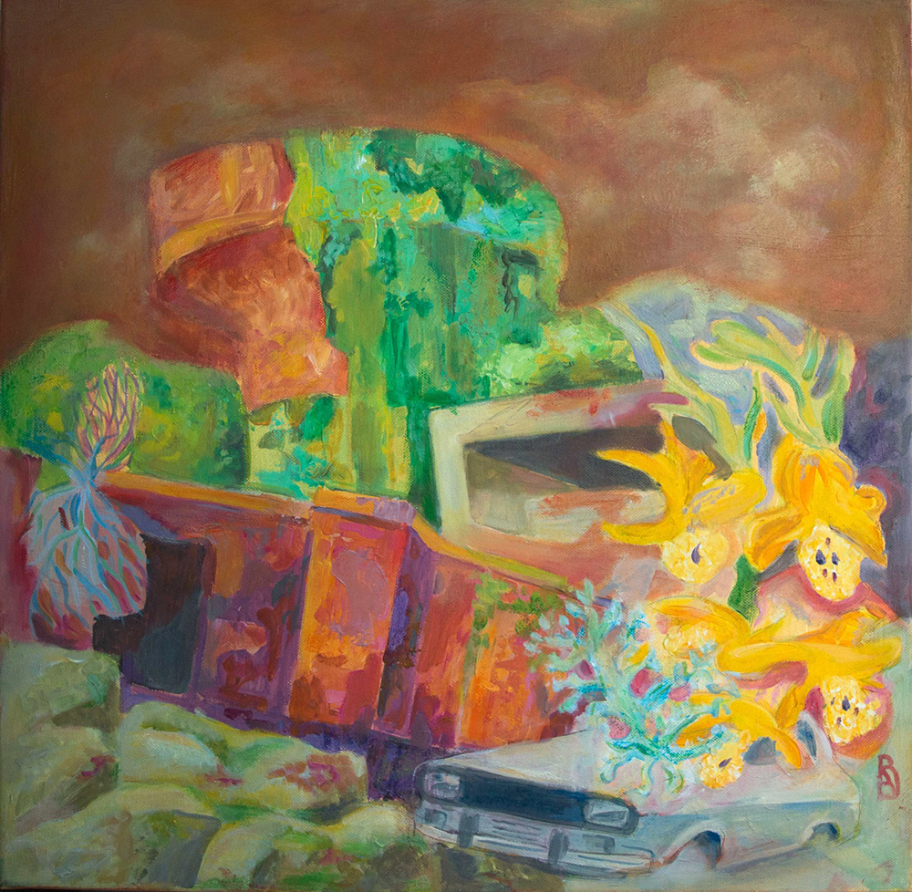 Memories of green, 50x50cm, acrylic and oil on canvas (available)